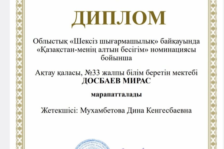 🏆ОБЛЫСТЫҚ ЖЕТІСТІК🏆 Облыстық “Шексіз шығармашылық” байқауында “Қазақстан-менің алтын бесігім” номинациясы…Мамыр 2, 2025